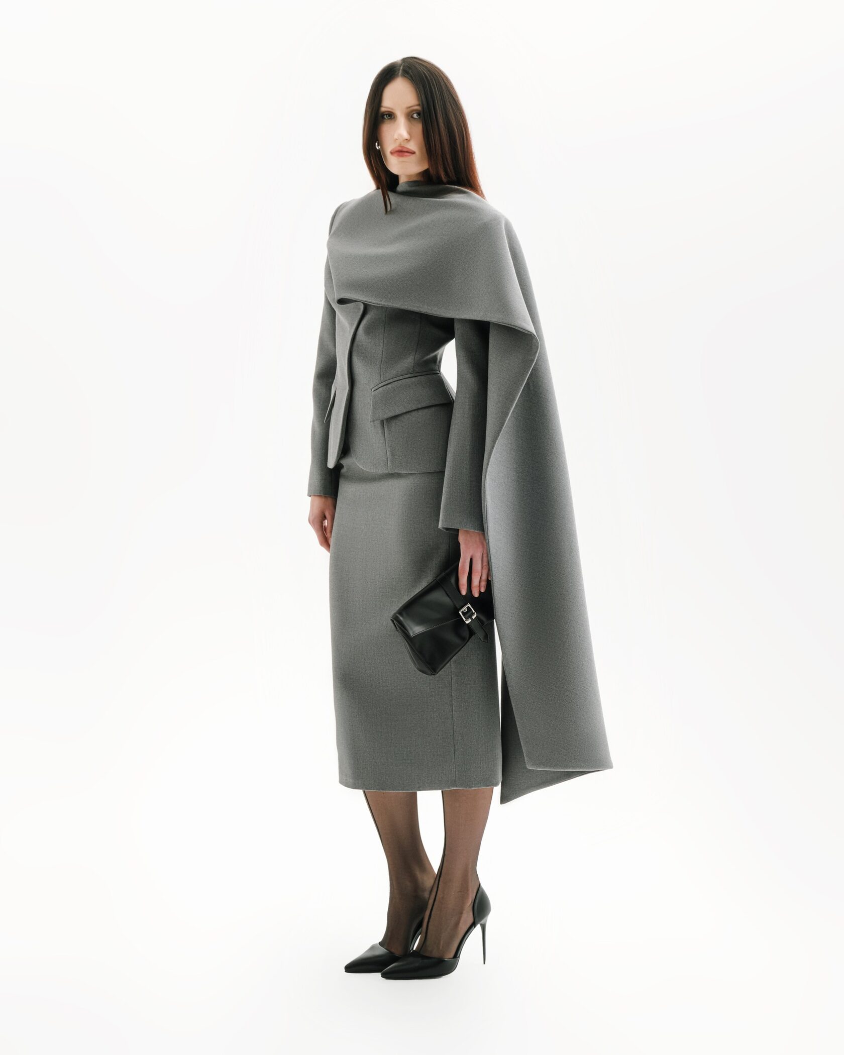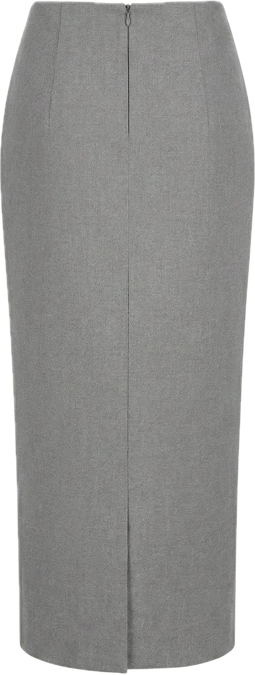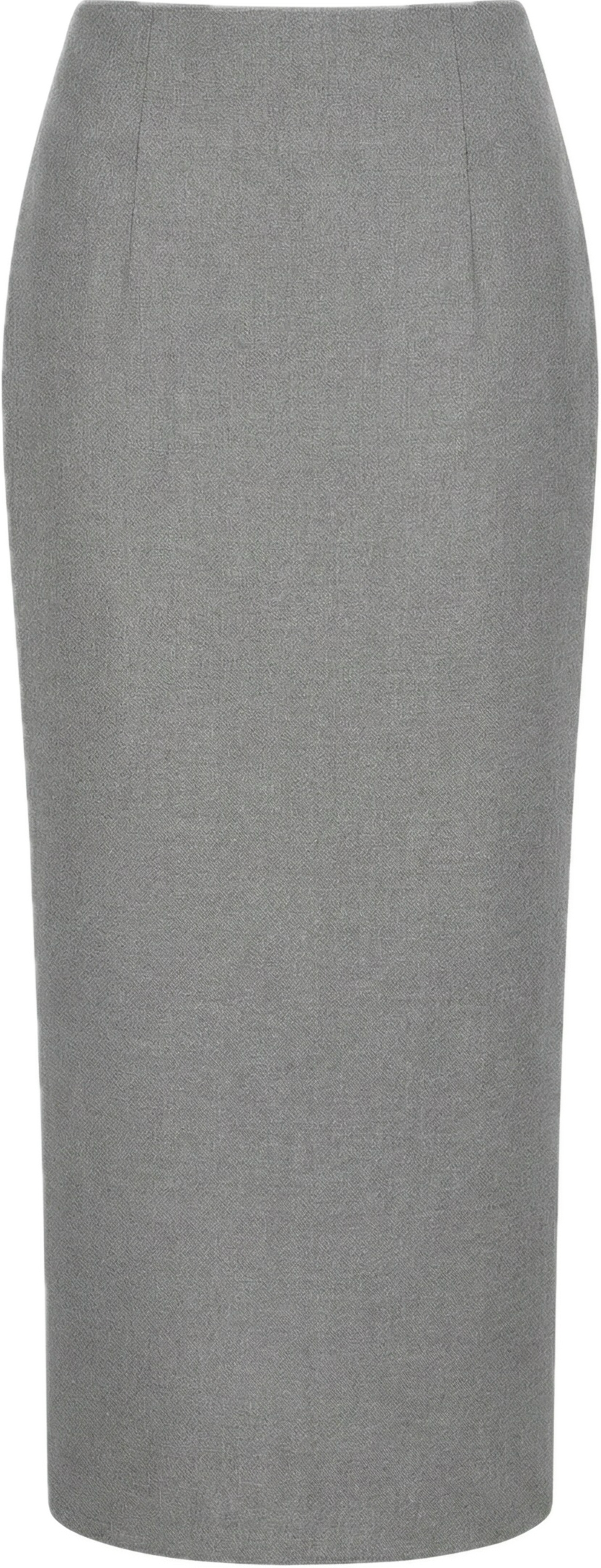 Description: Midi-length pencil skirt. Crafted from dense grey suiting fabric with a melange texture. • Features: fits at the waist, front and back shaping darts, classic center back vent. Concealed back zip closure. Composition: • Shell: 65% Polyester, 30% Viscose, 5% Cotton • Lining: 70% Polyester, 30% Viscose Care: Dry clean, iron at low temperature
