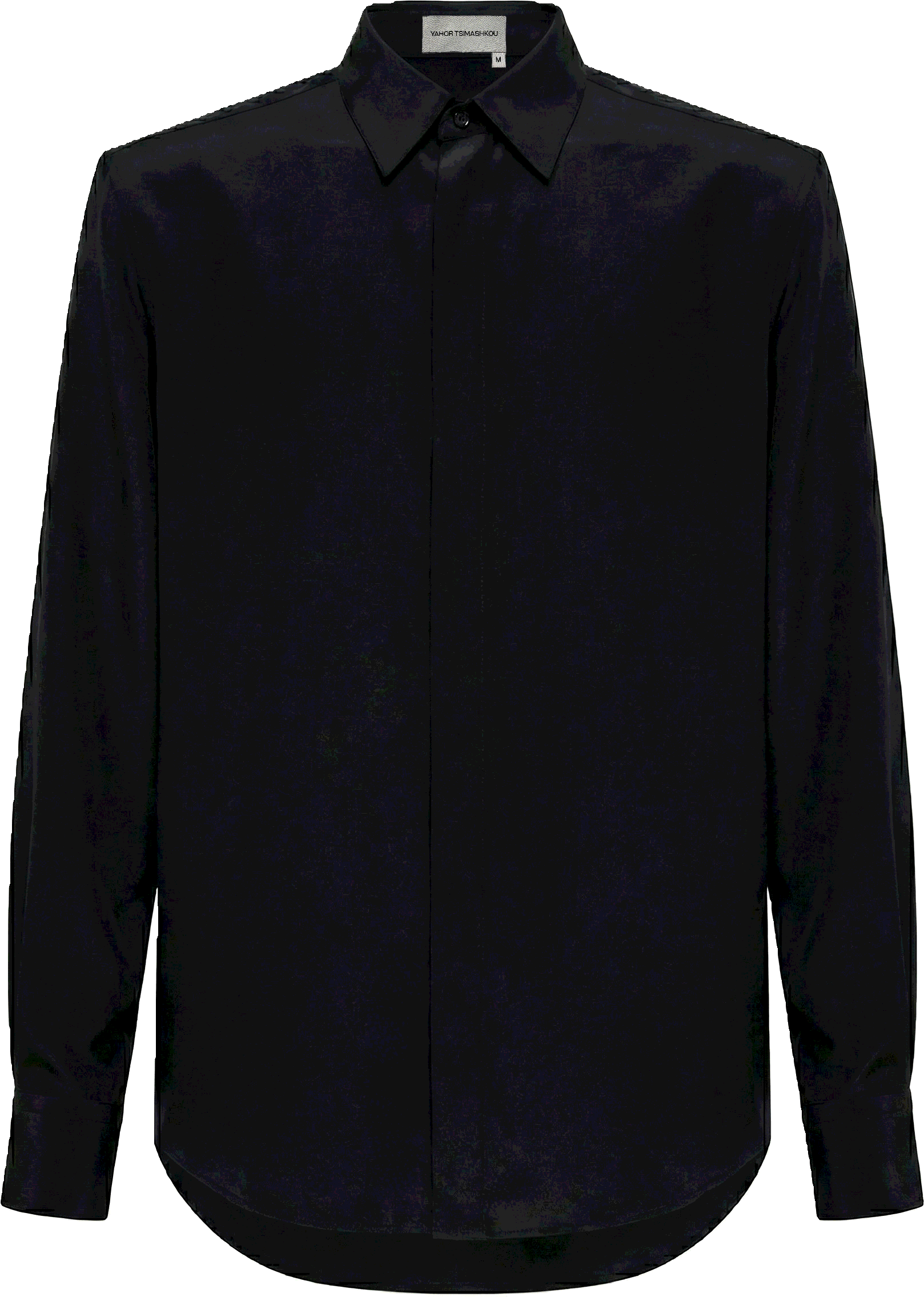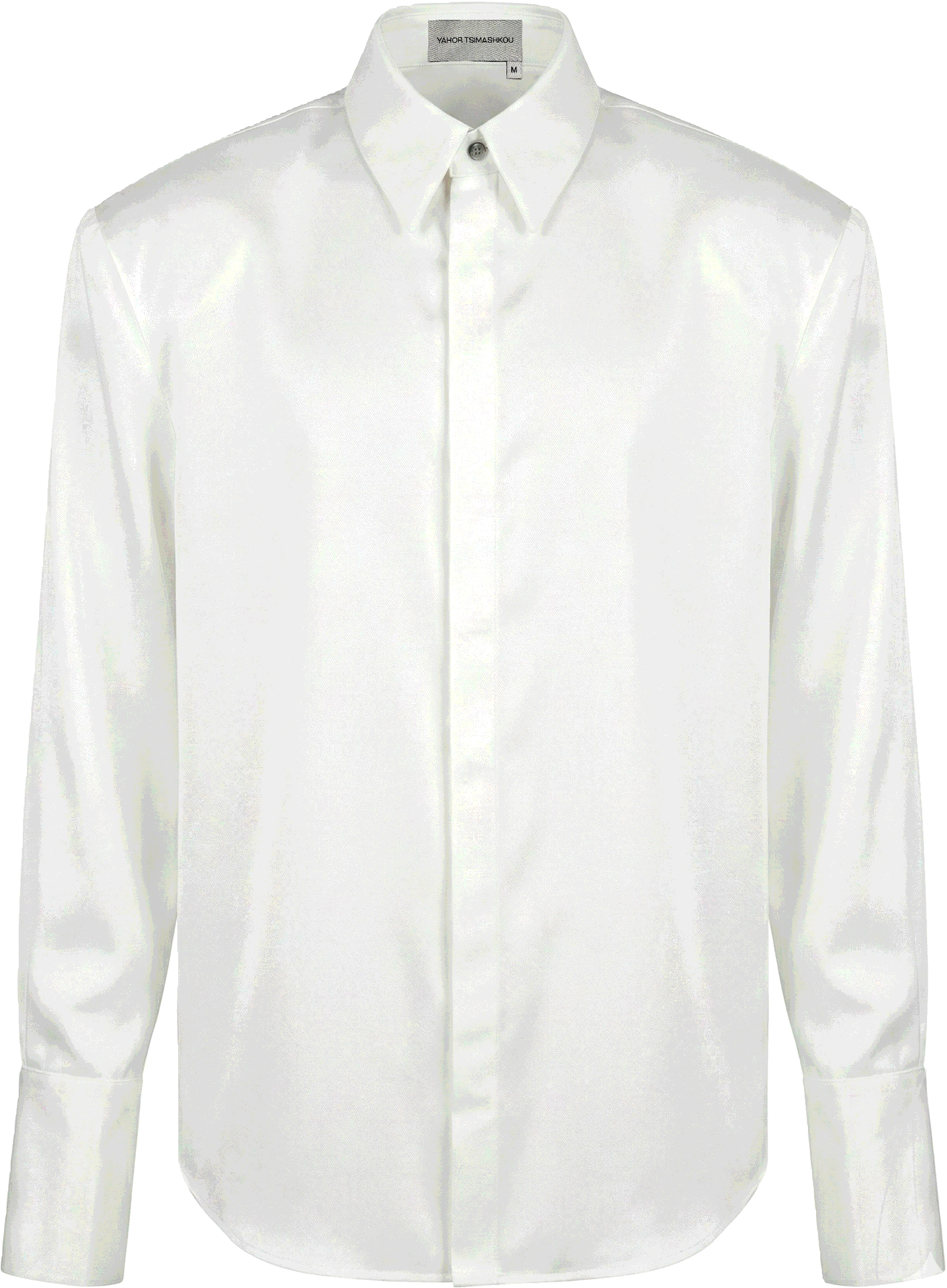 Description: Oversized shirt with a loose fit. Crafted from smooth fabric • Features: wide shoulders with shoulder pads, elongated sleeves. Concealed button placket closure. Composition: • Shell: viscose 60% polyester 40% Care: delicate wash at 30°C, iron at medium temperature